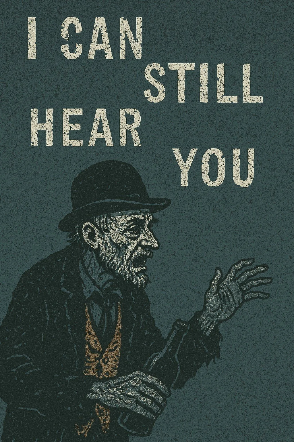 The play takes a surreal turn when Tilly notices they have an actual audience watching them, breaking the fourth wall. As they struggle with this reality-bending revelation, they're visited by an eccentric Tramp in distinctive clothing who is searching for two "gentlemen" from another play. In a delightful twist of theatrical absurdity, it becomes clear that the Tramp has wandered into the wrong production entirely. The piece ends with Tilly making a clever announcement to the audience that inverts the premise of the classic play they had just watched.